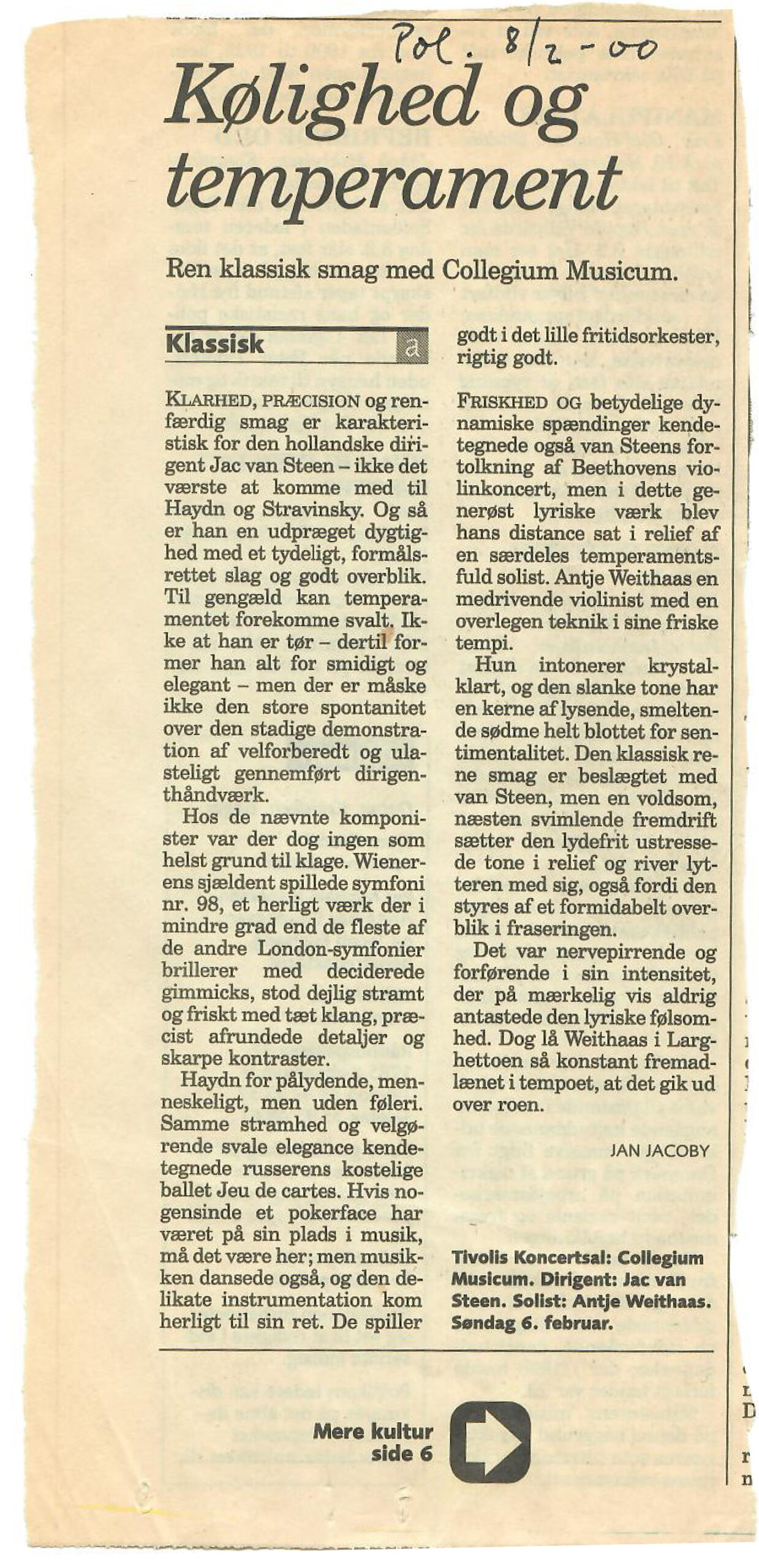 Jac van Steen optrådte som gæstedirigent og stjerneviolinisten Antje Weithaas gæstede her Collegium for anden gang og efter hendes store succes med Mendelssohn.
